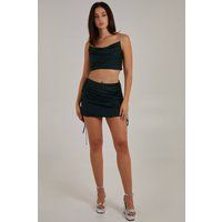 Get ready to turn heads in this Lace Tiered Mini Skirt! | Pink Vanilla Women's Dark Green Diamante Tie Waist Skirt | Size: 12 - Manufacturers part number: Pink Vanilla_5056651200714