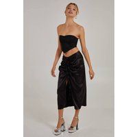 Get ready to dance the night away with our Ruched Midi Skirt. With tie detail, this skirt is all you need to make a statement this season. Whether you're off on a night out with the girls' or you just want something glam, we've got you covered. | Pink Vanilla Women's Ruched Midi Skirt With Tie in Black | Size: 8 - Manufacturers part number: Pink Vanilla_5056651200882