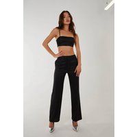 Get ready to party in this Metallic Straight Leg Trousers. Grab your girls and hit the dancefloor in the party 'fit of the season. Finish the look with our Metallic Crop Top and Metallic Cropped Blazer. | Pink Vanilla Women's Metallic Straight Leg Trousers in Black | Size: 6 - Manufacturers part number: Pink Vanilla_5056651226530