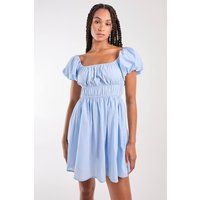 This summer dress has it all: cute puff sleeves, shorts for extra comfort and side pockets. You're going to wear it everyday around the city for an effortless breezy look. | Pink Vanilla Women's Puff Sleeve Mini Dress with Shorts in Blue | Size: Small - Manufacturers part number: Pink Vanilla_5056651248860