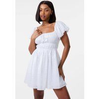 We are sure this is the it-dress of the season. Just picture yourself at a picnic in a park while the sun is out or strolling around a vintage market, wearing this cute dress. | Pink Vanilla Women's Ivory Broderie Puff Sleeve Mini Dress With Shorts | Size: Small - Manufacturers part number: Pink Vanilla_5056651265492