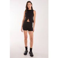 Tailored shorts or hotpants£ We can't decide either. Pink Vanilla got you these Pinstripe Tailored Shorts to cover all your needs. These shorts feature a tailored fit, a striped design and e a mid waist fit. Pair with our Pinstripe Button Front Longline Waistcoat. | Pink Vanilla Women's Pinstipe Tailored Shorts in Black | Size: Large - Manufacturers part number: Pink Vanilla_5056651265737