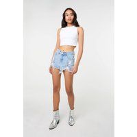 Shine and stand out in these Denim Embellished Distressed Shorts! | Pink Vanilla Women's Light Blue Denim Embellished Distressed Shorts | Size: 6 - Manufacturers part number: Pink Vanilla_5056651267953