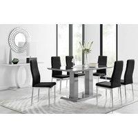 With a unique pillared structure and high gloss surface, the grey 6 seater Imperia dining table has a modern but classic design with 6 Black velvet Milan chairs. Features: Soft touch velvet with diamond hatched stitching and silver legs Stunning high gloss dining set to modernise any home Chair Dimensions: Width-40cm Depth-50.5cm Height-97.5cm Seat Height-46cm Contemporary in application and timeless in design Simple assembly Modern on-trend design Soft touch velvet with diamond hatched stitching and si...
