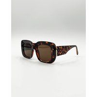 Accessible affordable yet fashion forward sunglasses are the core foundation of svnx design. From classic aviators rounded shades that will shake up your outfit to our latest fashion specs here at SVNX we provide all the latest accessories trends to complete every look. All our styles are fda approved. | SVNX Women's Oversized Square Sunglasses with Diamond Check Print Arm in Brown - Manufacturers part number: SVNX_5056657320287