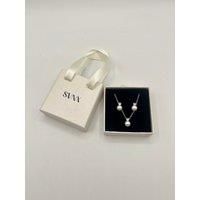 Large Pearl Diamante Necklace and Earrings Set. Offering a timeless blend of sophistication and sparkle. Set in a silver-tone finish, each earring features a lustrous pearl accented with shimmering diamante detailing, making them perfect for both special occasions and adding a touch of glam to everyday wear. A stylish choice for yourself or as a thoughtful gift. Colour: Silver Diamante detail Pearl detail Gift box Stud backing Stainless steel SKU: JE401321 9mm pearl