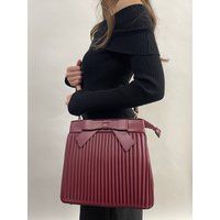 This fabulous faux leather tote bag features pleated detail, zip top closure with inner pockets. Come with a detachable shoulder strap for style switch. Dimension W x H x D = 24cm x 23cm x 11cm approximately. | SVNX Women's Pleated Bow Grab Bag with Shoulder Strap in Burgundy - Manufacturers part number: SVNX_5056657332037