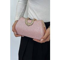 Pink Shimmer/Gold hardware. Long chain Strap included. Wipe Clean with Damp Cloth. Size: L:21cm H:12cm D:6cm PU Leather, Rhinestone, Metal Outer and Polyester lining SKU: HB352209 | SVNX Women's Pink Shimmer Clutch Bag - Manufacturers part number: SVNX_5056657334420