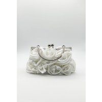 Chain strap included, Spot Clean Only W 25cm H 14cm D 9cm 100% Polyester SKU: HB331507 | SVNX Women's Rose Satin Clutch Bag in White - Manufacturers part number: SVNX_5056657335038