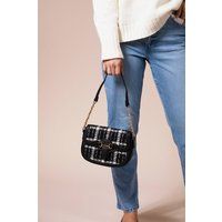 Versatile everyday bag with classic check print stylish enough to dress up, casual enough to dress down. Perfect for any occasion, from errands to evenings out. Features: 2 Straps. Gold hardware. PU/Polyester. H: 17.0CM W: 21.0CM D: 6.5CM. | SVNX Women's Knit Check Shoulder Bag in Black - Manufacturers part number: SVNX_5056657337063