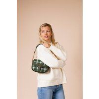 Versatile everyday bag with classic check print stylish enough to dress up, casual enough to dress down. Perfect for any occasion, from errands to evenings out. Features: 2 Straps. Gold hardware. PU/Polyester. H: 17.0CM W: 21.0CM D: 6.5CM. | SVNX Women's Knit Check Shoulder Bag in Green - Manufacturers part number: SVNX_5056657337070
