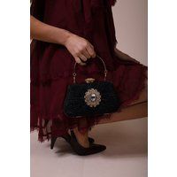 Elevate every look with our timeless clutch bagscrafted for elegance, designed to impress. Featuring refined finishes and a sleek chain strap, they're the ultimate statement in luxury. L:20.5cm W:4cm H:13cm. Polyester. Chain Strap Included. | SVNX Women's Ruched Jewel Clutch Bag in Black - Manufacturers part number: SVNX_5056657339609