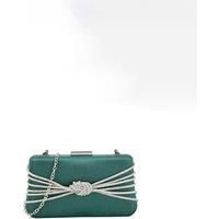This satin clutch brings effortless elegance to your look, featuring glittering diamante detailing and a graceful knot accent. The perfect finishing touch for evening outings and formal events. L: 18.5 cm W:3cm H:10cm. | SVNX Women's Satin Diamante Knot Detail Clutch Bag in Green - Manufacturers part number: SVNX_5056657340490