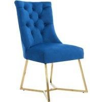 Elevate your dining space with this black velvet dining chair, featuring plush upholstery, a deep tufted backrest, and foam cushioning for luxurious comfort. Designed for modern elegance, it boasts a sturdy wooden frame, gold-plated stainless steel legs, and a chic gold ring pull for added flair and easy movementperfect for upscale dining rooms or stylish accent seating in contemporary interiors. | Life Interiors Single Ambra Modern Velvet Dining Chair with Gold Legs, Ring Handle & Tufted Back in Blue - Manufacturers part number: Life Interiors_5056660010229