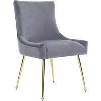 Elevate your space with this black velvet dining chair, featuring plush velvet upholstery, high-density foam cushioning, and a sleek armless silhouette with a gently curved back for ergonomic comfort. Built on a sturdy wooden frame with gold-plated stainless steel legs and a matching gold ring handle, this modern chair adds a touch of glam and functionalityperfect for dining rooms, vanities, or stylish home offices. | Life Interiors Single Viviana Velvet Dining Chair with Gold Legs and Ring Handle in Grey - Manufacturers part number: Life Interiors_5056660010328
