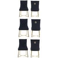 Elevate your dining space with this black velvet dining chair, featuring plush upholstery, a deep tufted backrest, and foam cushioning for luxurious comfort. Designed for modern elegance, it boasts a sturdy wooden frame, gold-plated stainless steel legs, and a chic gold ring pull for added flair and easy movementperfect for upscale dining rooms or stylish accent seating in contemporary interiors. | Life Interiors Set of 6 Ambra Modern Velvet Dining Chairs with Gold Legs, Ring Handle & Tufted Back in Black - Manufacturers part number: Life Interiors_5056660011646
