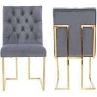 Enhance your dining or accent space with this tufted velvet dining chair, featuring soft velvet upholstery, plush foam cushioning, and a deep button-tufted backrest for timeless elegance and comfort. Built on a durable wooden frame with gold-finished rubberwood legs and a matching back handle for easy movement, this chair blends luxury and functionalityideal for modern, classic, or glam interiors. | Life Interiors Set of 2 Siena Luxury Tufted Velvet Dining Chairs with Gold Frame in Grey - Manufacturers part number: Life Interiors_5056660011691