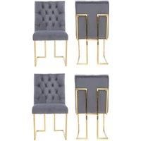 Enhance your dining or accent space with this tufted velvet dining chair, featuring soft velvet upholstery, plush foam cushioning, and a deep button-tufted backrest for timeless elegance and comfort. Built on a durable wooden frame with gold-finished rubberwood legs and a matching back handle for easy movement, this chair blends luxury and functionalityideal for modern, classic, or glam interiors. | Life Interiors Set of 4 Siena Luxury Tufted Velvet Dining Chairs with Gold Frame in Grey - Manufacturers part number: Life Interiors_5056660011738