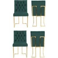Enhance your dining or accent space with this tufted velvet dining chair, featuring soft velvet upholstery, plush foam cushioning, and a deep button-tufted backrest for timeless elegance and comfort. Built on a durable wooden frame with gold-finished rubberwood legs and a matching back handle for easy movement, this chair blends luxury and functionalityideal for modern, classic, or glam interiors. | Life Interiors Set of 4 Siena Luxury Tufted Velvet Dining Chairs with Gold Frame in Green - Manufacturers part number: Life Interiors_5056660011745