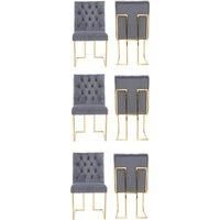 Enhance your dining or accent space with this tufted velvet dining chair, featuring soft velvet upholstery, plush foam cushioning, and a deep button-tufted backrest for timeless elegance and comfort. Built on a durable wooden frame with gold-finished rubberwood legs and a matching back handle for easy movement, this chair blends luxury and functionalityideal for modern, classic, or glam interiors. | Life Interiors Set of 6 Siena Luxury Tufted Velvet Dining Chairs with Gold Frame in Grey - Manufacturers part number: Life Interiors_5056660011776