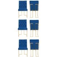 Enhance your dining or accent space with this tufted velvet dining chair, featuring soft velvet upholstery, plush foam cushioning, and a deep button-tufted backrest for timeless elegance and comfort. Built on a durable wooden frame with gold-finished rubberwood legs and a matching back handle for easy movement, this chair blends luxury and functionalityideal for modern, classic, or glam interiors. | Life Interiors Set of 6 Siena Luxury Tufted Velvet Dining Chairs with Gold Frame in Blue - Manufacturers part number: Life Interiors_5056660011790