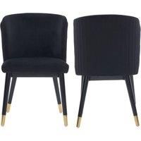 Elevate your space with this modern velvet dining chair, featuring soft velvet upholstery, plush foam cushioning, and a curved backrest with subtle vertical tufting for a refined, luxurious look. Built on a solid wooden frame with sturdy rubberwood legs and sleek gold-tipped feet, this elegant chair blends comfort, durability, and styleperfect for dining rooms, vanities, or accent seating in contemporary interiors. | Life Interiors Set of 2 Sofina Modern Velvet Dining Chairs, Tufted Back, Wooden Frame in Black - Manufacturers part number: Life Interiors_5056660011806