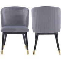 Elevate your space with this modern velvet dining chair, featuring soft velvet upholstery, plush foam cushioning, and a curved backrest with subtle vertical tufting for a refined, luxurious look. Built on a solid wooden frame with sturdy rubberwood legs and sleek gold-tipped feet, this elegant chair blends comfort, durability, and styleperfect for dining rooms, vanities, or accent seating in contemporary interiors. | Life Interiors Set of 2 Sofina Modern Velvet Dining Chairs, Tufted Back, Wooden Frame in Grey - Manufacturers part number: Life Interiors_5056660011813