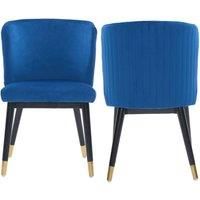 Elevate your space with this modern velvet dining chair, featuring soft velvet upholstery, plush foam cushioning, and a curved backrest with subtle vertical tufting for a refined, luxurious look. Built on a solid wooden frame with sturdy rubberwood legs and sleek gold-tipped feet, this elegant chair blends comfort, durability, and styleperfect for dining rooms, vanities, or accent seating in contemporary interiors. | Life Interiors Set of 2 Sofina Modern Velvet Dining Chairs, Tufted Back, Wooden Frame in Blue - Manufacturers part number: Life Interiors_5056660011837