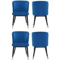 Elevate your space with this modern velvet dining chair, featuring soft velvet upholstery, plush foam cushioning, and a curved backrest with subtle vertical tufting for a refined, luxurious look. Built on a solid wooden frame with sturdy rubberwood legs and sleek gold-tipped feet, this elegant chair blends comfort, durability, and styleperfect for dining rooms, vanities, or accent seating in contemporary interiors. | Life Interiors Set of 4 Sofina Modern Velvet Dining Chairs, Tufted Back, Wooden Frame in Blue - Manufacturers part number: Life Interiors_5056660011875