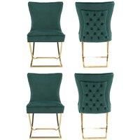Add a touch of contemporary glam to your space with this velvet tufted dining chair, featuring plush foam cushioning, soft velvet upholstery, and a high diamond-tufted backrest with elegant button detailing and 8mm piping. Supported by sleek, curved chrome silver legs, this chair offers both stability and style, making it a perfect statement piece for modern dining rooms, home offices, or chic accent areas. | Life Interiors Set of 4 Trafalgar Velvet Tufted Dining Chairs with Chrome Silver Legs in Green - Manufacturers part number: Life Interiors_5056660011974