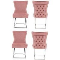 Add a touch of contemporary glam to your space with this velvet tufted dining chair, featuring plush foam cushioning, soft velvet upholstery, and a high diamond-tufted backrest with elegant button detailing and 8mm piping. Supported by sleek, curved chrome silver legs, this chair offers both stability and style, making it a perfect statement piece for modern dining rooms, home offices, or chic accent areas. | Life Interiors Set of 4 Trafalgar Velvet Tufted Dining Chairs with Chrome Silver Legs in Pink - Manufacturers part number: Life Interiors_5056660011981