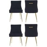 Elevate your space with this black velvet dining chair, featuring plush velvet upholstery, high-density foam cushioning, and a sleek armless silhouette with a gently curved back for ergonomic comfort. Built on a sturdy wooden frame with gold-plated stainless steel legs and a matching gold ring handle, this modern chair adds a touch of glam and functionalityperfect for dining rooms, vanities, or stylish home offices. | Life Interiors Set of 4 Viviana Velvet Dining Chairs with Gold Legs & Ring Handle in Black - Manufacturers part number: Life Interiors_5056660012087