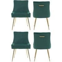 Elevate your space with this black velvet dining chair, featuring plush velvet upholstery, high-density foam cushioning, and a sleek armless silhouette with a gently curved back for ergonomic comfort. Built on a sturdy wooden frame with gold-plated stainless steel legs and a matching gold ring handle, this modern chair adds a touch of glam and functionalityperfect for dining rooms, vanities, or stylish home offices. | Life Interiors Set of 4 Viviana Velvet Dining Chairs with Gold Legs & Ring Handle in Green - Manufacturers part number: Life Interiors_5056660012100