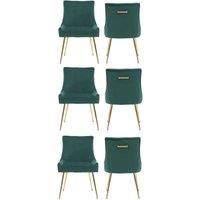 Elevate your space with this black velvet dining chair, featuring plush velvet upholstery, high-density foam cushioning, and a sleek armless silhouette with a gently curved back for ergonomic comfort. Built on a sturdy wooden frame with gold-plated stainless steel legs and a matching gold ring handle, this modern chair adds a touch of glam and functionalityperfect for dining rooms, vanities, or stylish home offices. | Life Interiors Set of 6 Viviana Velvet Dining Chairs with Gold Legs & Ring Handle in Green - Manufacturers part number: Life Interiors_5056660012148