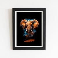Warrens fine art prints are the perfect way to add a pop of life! No matter what house decor you already have, it will make room for these magical prints. These vibrant prints are available for purchase in various different sizes to perfectly fit the arrangement of your home. Why wouldn't you want to invest in something filled with beauty that can turn your house into a home£ | Warren Reed - Designer Splashart Elephant Blue Framed Art Print in Black | Size: W20" x H30"