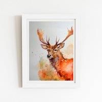 Warrens fine art prints are the perfect way to add a pop of life! No matter what house decor you already have, it will make room for these magical prints. These vibrant prints are available for purchase in various different sizes to perfectly fit the arrangement of your home. Why wouldn't you want to invest in something filled with beauty that can turn your house into a home£ | Warren Reed - Designer Majestic Stag Watercolour Framed Art Print in White | Size: W16" x H24"