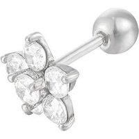 Seol + Gold Sterling Silver CZ Flower Barbell Stud Earring CZ Flower Barbell Stud Earring Sterling Silver (925) Sold as a single Bar = 0.7mm thick x 6mm length Front (flower) = 6mm Cubic zirconia stones = 6 per stud Ball fitting measures 3mm (screws on at back) Gift ready - branded cotton gift bag included Age Range: 3+ Sterling Silver (925) CZ Flower Barbell Stud Earring Sold as a single Bar = 0.7mm thick x 6mm length Front (flower) = 6mm Cubic zirconia stones = 6 per stud Ball fitting measures 3mm (sc...