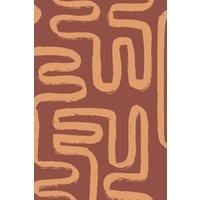 The wallpaper has a simple two color palette that complements the bold design, making it a versatile choice and suitable for many different styles of space. This wallpaper is 75cm wide and 7m long. | Bobbi Beck Eco-Friendly Abstract Squiggle Wallpaper in Orange - Manufacturers part number: Bobbi Beck_5056669709193