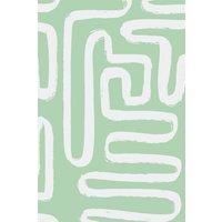 The wallpaper has a simple two color palette that complements the bold design, making it a versatile choice and suitable for many different styles of space. This wallpaper is 75cm wide and 7m long. | Bobbi Beck Eco-Friendly Abstract Squiggle Wallpaper in Green - Manufacturers part number: Bobbi Beck_5056669709209