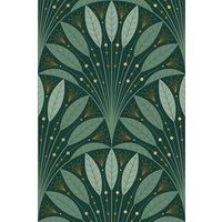 This wallpaper, made up of a classic scallop shell pattern that is full of detail and intricate design, combines traditional design with unique motifs. This wallpaper is 75cm wide and 7m long. | Bobbi Beck Eco-Friendly Art Deco Leaf Fan Wallpaper in Green - Manufacturers part number: Bobbi Beck_5056669709773