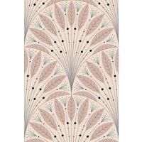 This wallpaper, made up of a classic scallop shell pattern that is full of detail and intricate design, combines traditional design with unique motifs. This wallpaper is 75cm wide and 7m long. | Bobbi Beck Eco-Friendly Art Deco Leaf Fan Wallpaper in Beige - Manufacturers part number: Bobbi Beck_5056669709797