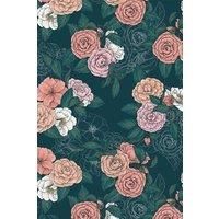 Whether you choose a light or dark color variation, the statement blooms are a focal point of this floral wallpaper and are sure to grab the attention. This wallpaper is 75cm wide and 7m long. | Bobbi Beck Eco-Friendly Illustrated Floral Wallpaper in Teal - Manufacturers part number: Bobbi Beck_5056669713060