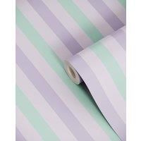 Inspired by the favorite triple-flavor ice cream. The Neapolitan is striped confection made from three pastel shades. Designed in collaboration with @paintthetownpastel as part of our Ice Cream Stripes Collection. This wallpaper is 75cm wide and 7m long. | Bobbi Beck Eco-Friendly Tricolour Ice Cream Stripe Pastel Wallpaper in Lilac - Manufacturers part number: Bobbi Beck_5056669716115