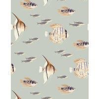 Serene fish swimming against a backdrop of nautical inspired hues. Is it any wonder that fish wallpaper continues to be a firm favourite£ A fantastic choice for those looking for something a little quirky whilst still retaining an elegance that will reflected around the space in which it sits. | Bobbi Beck Eco-Friendly Tropical Fish Wallpaper in Green - Manufacturers part number: Bobbi Beck_5056669716269