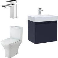 Designed with smaller spaces in mind, this bathroom bundle features a vanity basin unit paired with a high-quality toilet pan and concealed cistern. The space-saving layout helps maximize floor area while still offering practical storage. A soft-close toilet seat adds everyday comfort and quiet functionality. Tap and waste are not included, allowing flexibility to pair with your preferred brassware. | Balterley Cloakroom Vanity Unit, Tap & Toilet - Electric Blue/Chrome in Blue