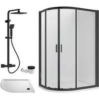 Patented Easyfit profile assembly system, Matt Black frame, Sliding doors for easy access, Quick release wheels for easy clean, 6mm toughened safety glass, Supplied with Pearlstone shower tray and waste, Thermostatically controlled shower kit with square head and handset Features: Rene Offset Quadrant L/H: 1180x1850x780, Aluminium Profile, Matt Black Finish Offset Quad Enclosure With Sliding Door And Square D Shaped Handle Screen Thickness: 6mm Offset Quad Shower Tray: 1200x40x800 Thermostataic Bar Show...