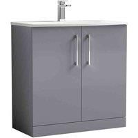 nuie ARN2205G Arno Floor Standing 2 Door Vanity Unit & Curved Ceramic Basin, 800mm, Satin Grey