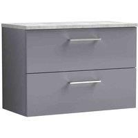 nuie Arno 800mm Wall Hung 2 Drawer Vanity & Laminate Top - Satin Grey, Grey