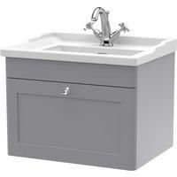 nuie 600mm Wall Hung 1 Drawer Vanity & Basin 1TH - Satin Grey