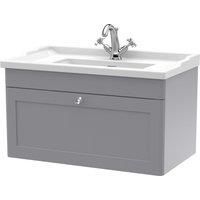 nuie 800mm Wall Hung 1 Drawer Vanity & Basin 1TH - Satin Grey, Grey